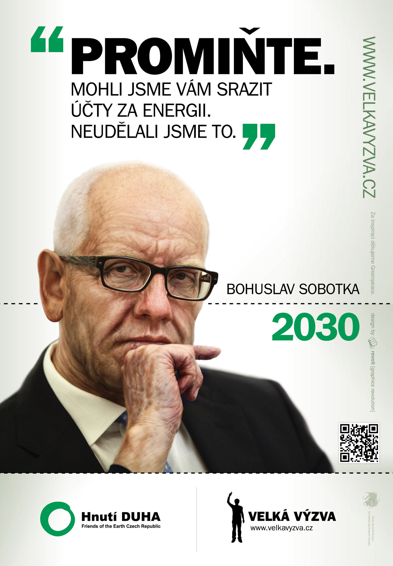 We produced and redesigned this Greenpeace worldwide campaign for Czech background with Czech politicians. Zprodukovali jsme a redesignovali celosvětovou kampaň hnutí Greenpeace pro české prostředí s českými politiky.