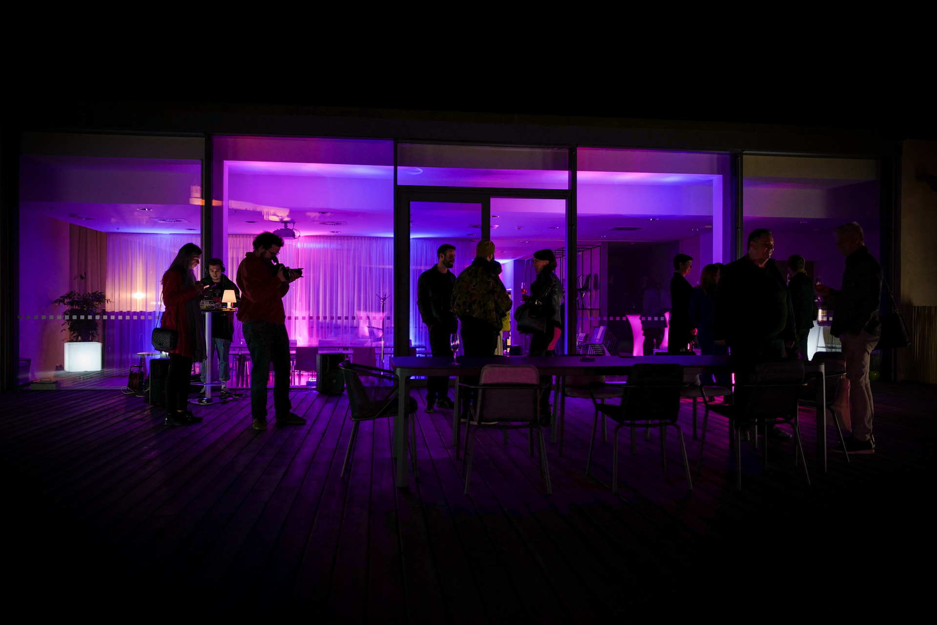 We provide this beautiful design place with light design. We have used our new stuff - wireless LED lights. There are no cables, only colored lights and beauty.